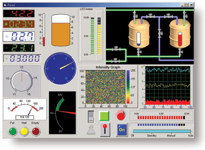 • 丰富的用户接口控件,包含图形、图表、仪表、旋钮、按钮、开关、滑块及7段数码管显示