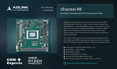 Empower your edge computing with ADLINK, a leading company enabling edge solutions. Leverage AMD's high performance, secure integration, and power efficiency advantages for a wide range of edge, networking, and edge systems with x86 core architecture. Experience superior processing and graphics performance with ADLINK's utilization of AMD Ryzen™ Embedded series, powered by Radeon™ RX, perfect for industrial, medical, automation and gaming applications.