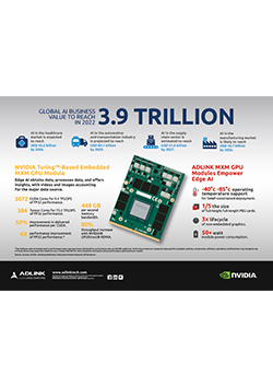 ADLINK’s DLAP Series brings system architecture and board design enhancements that greatly increase platform performance and performance-per-watt. DLAP platforms implement Quadro® embedded GPUs powered by latest generation Turing™ architecture and transfer data directly to GPU memory via NVIDIA GPUDirect™, which eliminates the CPU bottleneck.