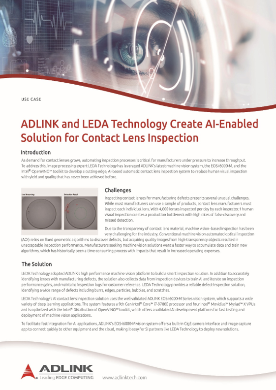 ADLINK and LEDA Technology Create AI-Enabled Solution for Contact Lens Inspection