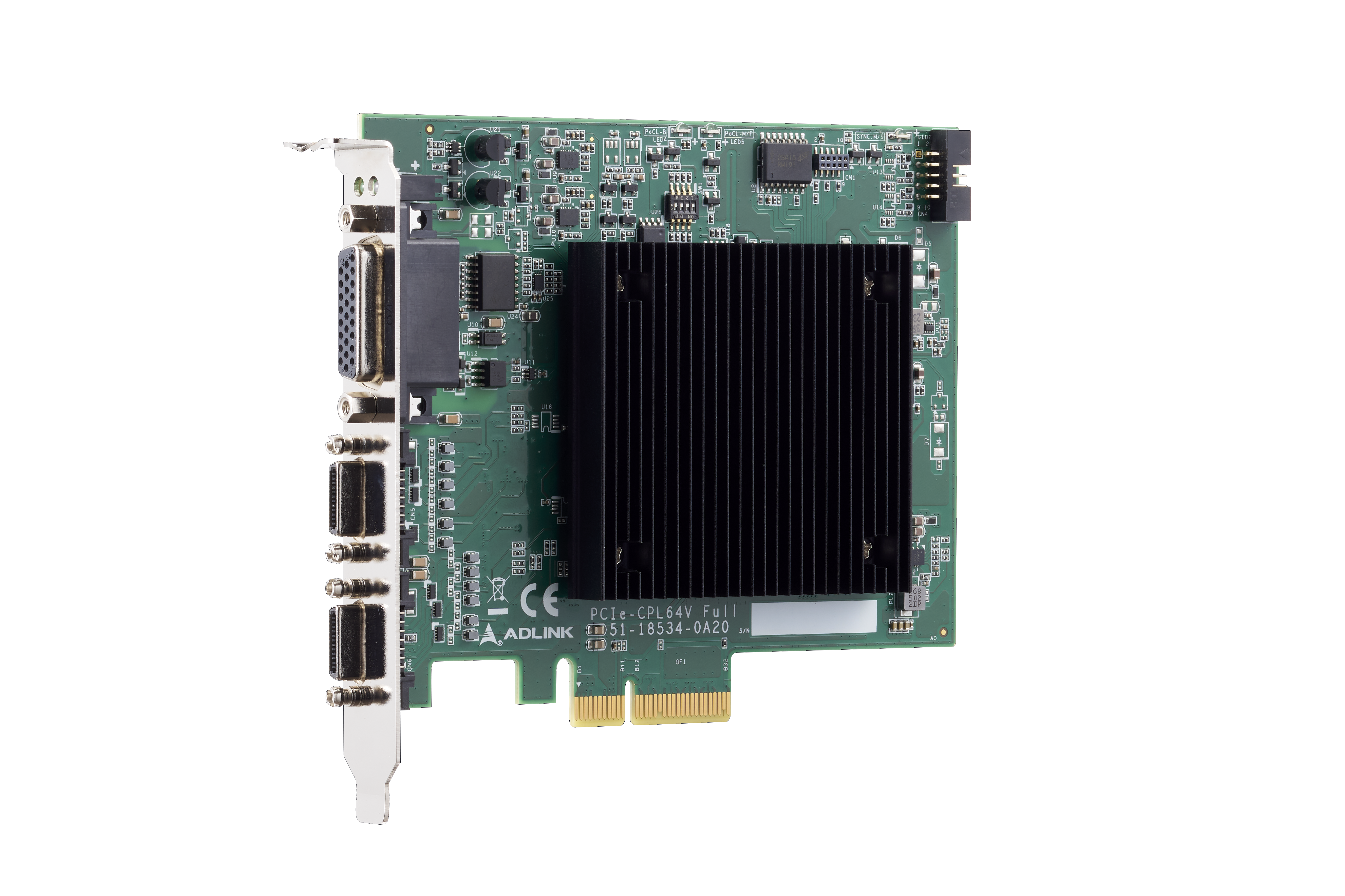 PCIe-CPL64V Full 是一款 Camera Link 图像采集卡,具备 PCIe Gen3 x4 高带宽连接能力并支持 PoCL(Camera Link 供电)。