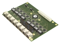 EXP-ETH8 is an eighfold Ethernet extension board for EPIC Express CPUs, which can also be used as a carrier board for PCI/104 Express processor boards. Up to two boards are stackable on our new Hurricane-QM57 SBC. Main applications are in the field of security, where each Ethernet channel requires its own independent MAC and MAC-ID and where the higher bandwidth is needed. Drivers are availble for Windows XP, Windows XP Embedded, QNX, and Linux operation systems.