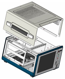 Maintaining a stable temperature inside the chassis is always a major concern for the operation of a PXI system. Thermal stability considerably relies on mechanical design for effective heat dispersion, including the selection of fans, position of fans and inlet/outlet apertures. We placed two 60CFM fans on the bottom of the chassis, as bottom-top convection allows increased effectiveness for airflow. Because our PXI system was designed with extremely harsh environments in mind, we tested it by configuring a 3U PXI resistor board that consumes 30 watts of power. We also installed seven resistor boards into the peripheral slots, for a total of 210 watts which generated relatively high heat that was dispersed in the chassis. Then we put the chassis in a 50�XC chamber for extended temperature testing. The results showed that the internal temperature remained stable throughout operation regardless of the high heat generated.