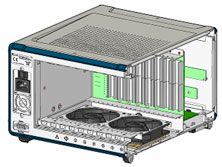 Typically, a PXI chassis contains only a PXI controller and several PXI modules, requiring additional peripherals such as a monitor and keyboard/mouse to operate the PXI system. If you need to operate the chassis in a remote location, you would need to carry those user-interface devices with your PXI system. This significantly limits the portability of the PXI system. Fortunately, PXI specification Rev. 2.2 allows the use of 64-bit PCI signals [AD32:63] on the J2 connector for the implementation of a rear I/O system controller. This revision allows ADLINK to implement a rear I/O module inside the chassis for the interconnection of signals, such as video, USB, and COM. When we designed our new PXI chassis, we integrated an 8.4" LCD touch panel into the chassis and wired all cables within the chassis. What users get is a simple and clean PXI chassis with a built-in LCD display that supports 800 x 600 resolution and touch panel interface. The built-in display allows a certain level of portability to users since they can easily build a stand-alone measurement system and perform testing and measurement jobs anywhere they need, without the burden of an external monitor or keyboard/mouse.